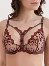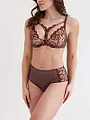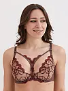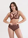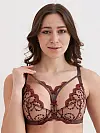 Бюстгальтер від бренду ZeBra із м’якою чашкою у кавовому кольорі прикрашений вишуканою рослинною вишивкою бордового відтінку.