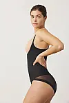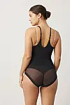 Завдяки інноваційному дизайну та стратегічно розташованим зонам компресії, ця модель підтягує живіт, талію та нижню частину спини, створюючи витончений силует. Лазерне обрізання в зоні сідниць із ефектом стрінгів забезпечує невидимість під одягом і додає образу нотку чуттєвості. Боді зручно сидить, непомітне під одягом і підходить для щоденного використання.