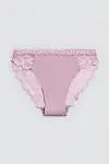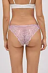 Лазерна обробка країв забезпечує гладкий силует і непомітність під одягом, а ніжне мереживо з боків і на спинці додає вишуканості. Бразильський крій підкреслює форми, забезпечуючи зручну посадку без заломів завдяки еластичній тканині.