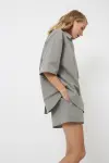 Високі широкі шорти оснащені щільним еластичним поясом, декоративними ґудзиками в передній частині та практичними кишенями, поєднуючи комфорт і стиль.