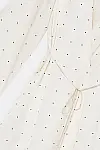 Легка та блискуча тканина зі суміші віскози та поліестеру з шовковисто-м’якою текстурою. Колір — витончений кремовий із делікатним чорним принтом у горошок.