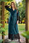 Велюровий халат класичного крою, декорований мереживомСклад 100% поліестер