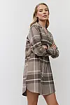 Модель має оверсайз фасон у сорочковому стилі і контрастне окантування навколо горловини та на спинці. Скошені вирізи знизу заабезпечують свободу рухів і зручнїсть.