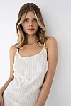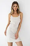 Виконана з м’якого фактурного трикотажу кремового кольору з ажурною текстурою. Модель напівприлеглого силуету, довжиною вище колін. Має тонкі бретелі та круглий виріз декольте.