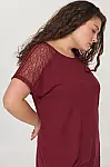 Сорочка вільного силуету, середньої довжини, зі спущеним плечем. По лінії плечей модель оздоблена ніжним мереживом, що додає образу витонченості та жіночності. М’яка тканина на основі модалу дарує винятково приємні відчуття на тілі, має шовковисту текстуру та добре зберігає форму після прання. Поєднання модалу з бавовною та еластаном забезпечує повітропроникність, еластичність і комфорт.