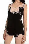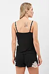 Приталений топ має тонкі регульовані бретелі, що дозволяють ідеально підігнати посадку. Шорти із вшитою резинкою забезпечують комфортну посадку на талії.