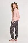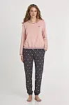 Комплект складається з кофти з довгим рукавом і довгих штанів з милим принтом ведмедиків. Персиковий колір додає образу м’якості й тепла, а еластична бавовняна тканина приємно прилягає до тіла й забезпечує свободу рухів.