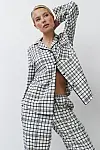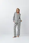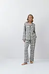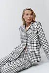 Класичний і стильний піжамний комплект зі штанами в дрібну клітинку кольору екрю та чорного від Aruelle ідеально підійде для затишного вечора та приємного сну!