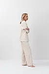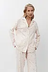 Сорочка з легко oversize посадкою та класичним відкладним коміром. Контрастний кантик уздовж вирізу горловини, кишені, манжет інизу штанів для вишуканого вигляду.