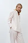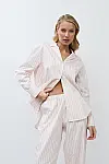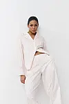 Класичний та романтичний піжамний комплект зі штанами з яскраво-рожевими смужками на світло-рожевому фоні від Aruelle!